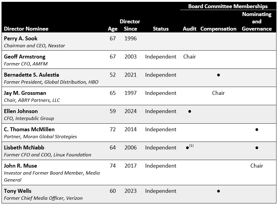 The following table provides information regarding our Board nominees as of April 30, 2025, including certain types of knowledge, skills, and business experiences, which our Board believes are relevant to our business and industry.